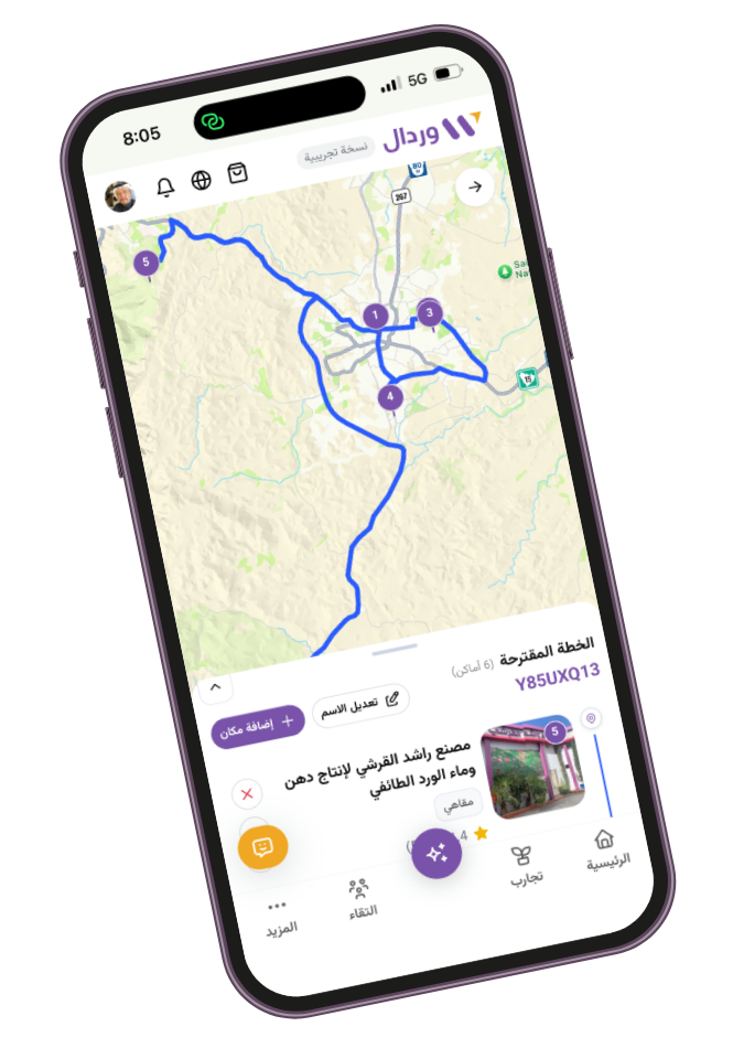 وردال هو تطبيق ذكي يساعد السياح والزائرين على التخطيط لرحلتهم من خلال اقتراح الأماكن المفضلة.
