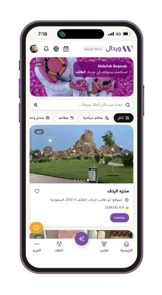 تمتع بأفضل تجربة سياحية باستخدام تطبيق وردال من خلال الخطط المخصصة وحجز التجارب المحلية بالاضافة الى الاستفادة من المرشد السياحي