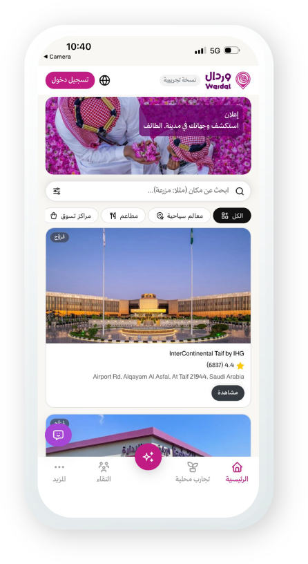 تمتع بأفضل تجربة سياحية باستخدام تطبيق وردال من خلال الخطط المخصصة وحجز التجارب المحلية بالاضافة الى الاستفادة من المرشد السياحي